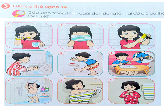 • Nêu được những việc cần làm để giữ vệ sinh cơ thể và lợi ích của việc làm đó.