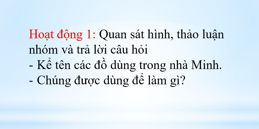 • Đặt một số câu hỏi tìm hiểu về đồ dùng, thiết bị trong nhà.
