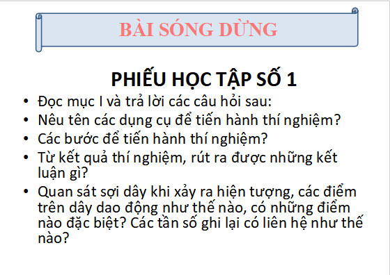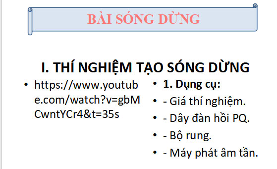 - Nêu được các đặc điểm sóng dừng, điều kiện để có sóng dừng