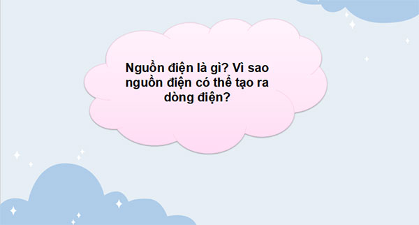 - GV cho HS đọc và trả lời câu hỏi ở ví dụ mở đầu bài học. “Lấy các ví dụ về nguồn điện”