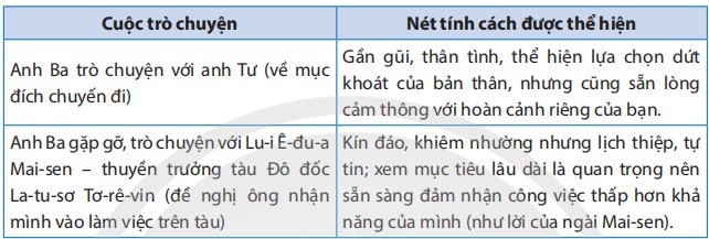 Trong văn bản, nhân vật “anh Ba” đã trò chuyện, tiếp xúc với anh Tư Lê, thuyền trưởng Louis Edouard Maisen.