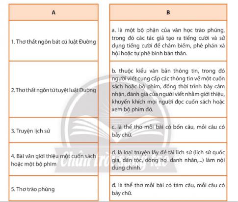 Nối nội dung ở cột A với nội dung tương ứng ở cột B