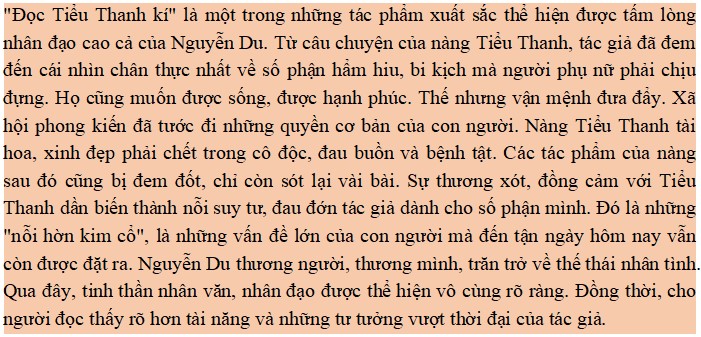 Suy nghĩ của em về tấm lòng nhân đạo của Nguyễn Du qua bài Đọc “Tiểu Thanh kí”