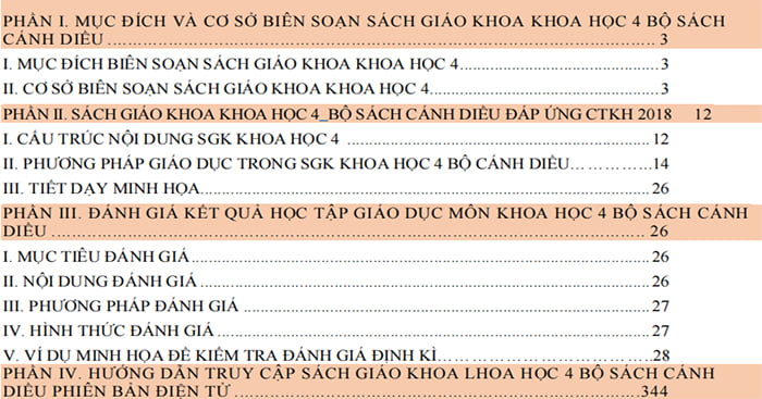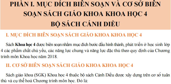 • Phần 1: Mục đích và cơ sở biên soạn sách giáo khoa Khoa học 4 bộ sách Cánh Diều.