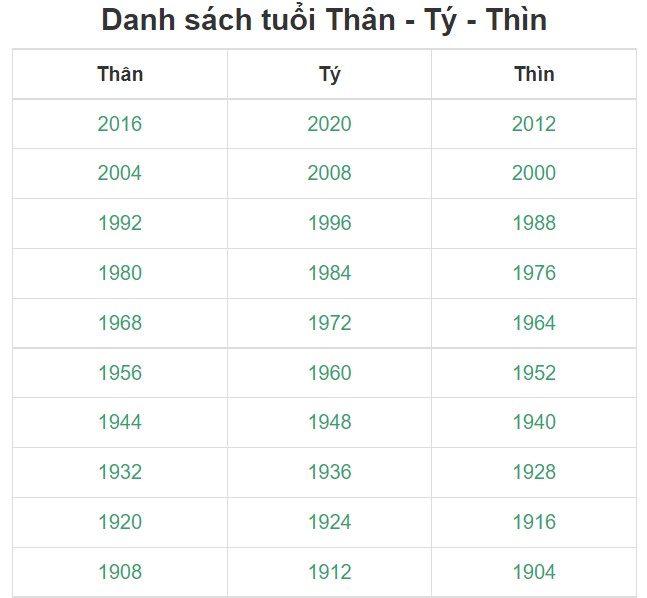 Tuổi Thìn: Nhâm Thìn (1952), Giáp Thìn (1964), Bính Thìn (1976), Mậu Thìn (1988), Canh Thìn (2000), Nhâm Thìn (2012)…