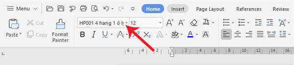 Bước 2: Mở Word lên, tại mục Font chọn font: HP001 4 hàng 1 ô ly.