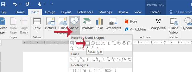 Bước 6: Để viết được chữ viết tay trên ô ly vừa tạo, vào Insert > Shape, chọn hình ô vuông hoặc hình chữ nhật bo tròn bo phần ô ly vừa tạo lại.