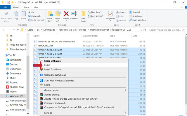 Bước 1: Tải Font chữ tập viết Tiểu học về rồi giải nén, chọn font cần cài đặt và nhấn Install để cài đặt font chữ Tiểu học có ô ly vào máy tính.