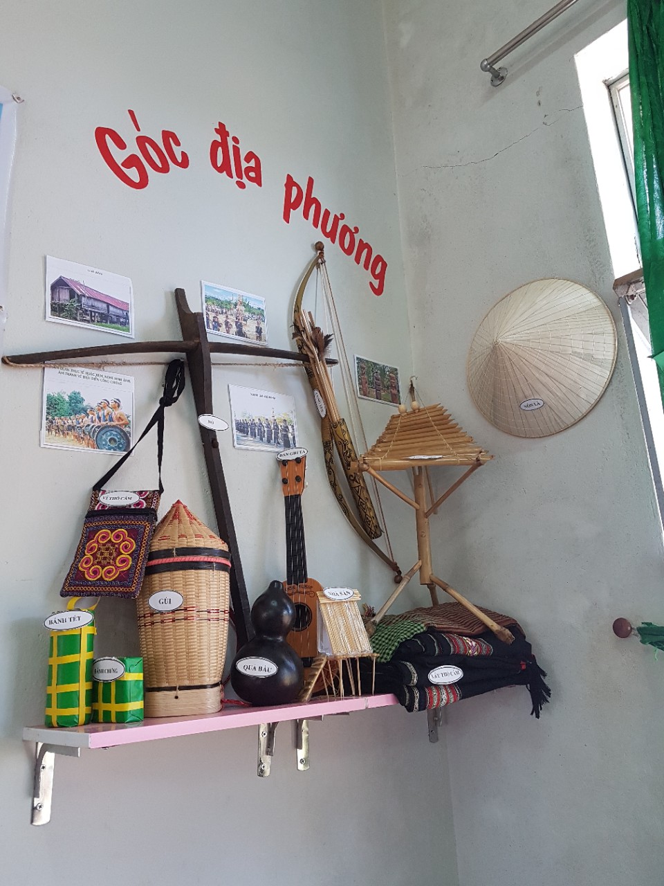 Góc địa phương thì giáo viên có thể trưng bày những đặc sản, sản phẩm làng nghề truyền thống (bằng hiện vật hay tranh ảnh), giúp các em có thể tìm hiểu rõ hơn về những sản vật cảu địa phương mình.