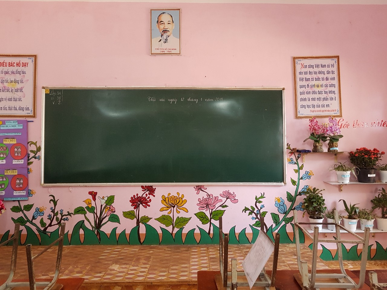 Nhiều người thường đùa vui rằng: ''Trên lớp học đâu chỉ có học sinh, thầy, cô giáo - bảng đen - phấn trắng mà còn có cả bốn bức tường". Chính vì thế, điều này cũng có nghĩa là mọi thông tin gắn lên tường đều góp phần giáo dục. Tùy theo sự sáng tạo của mỗi giáo viên mà có thể trang trí lên tường lớp học của mình những nội dung, hình ảnh với tính chất giáo sao cho thật phù hợp chẳng hạn như: các bước học tập, nội quy tự quản của học sinh, góc cảm xúc, biển kiến thức,...