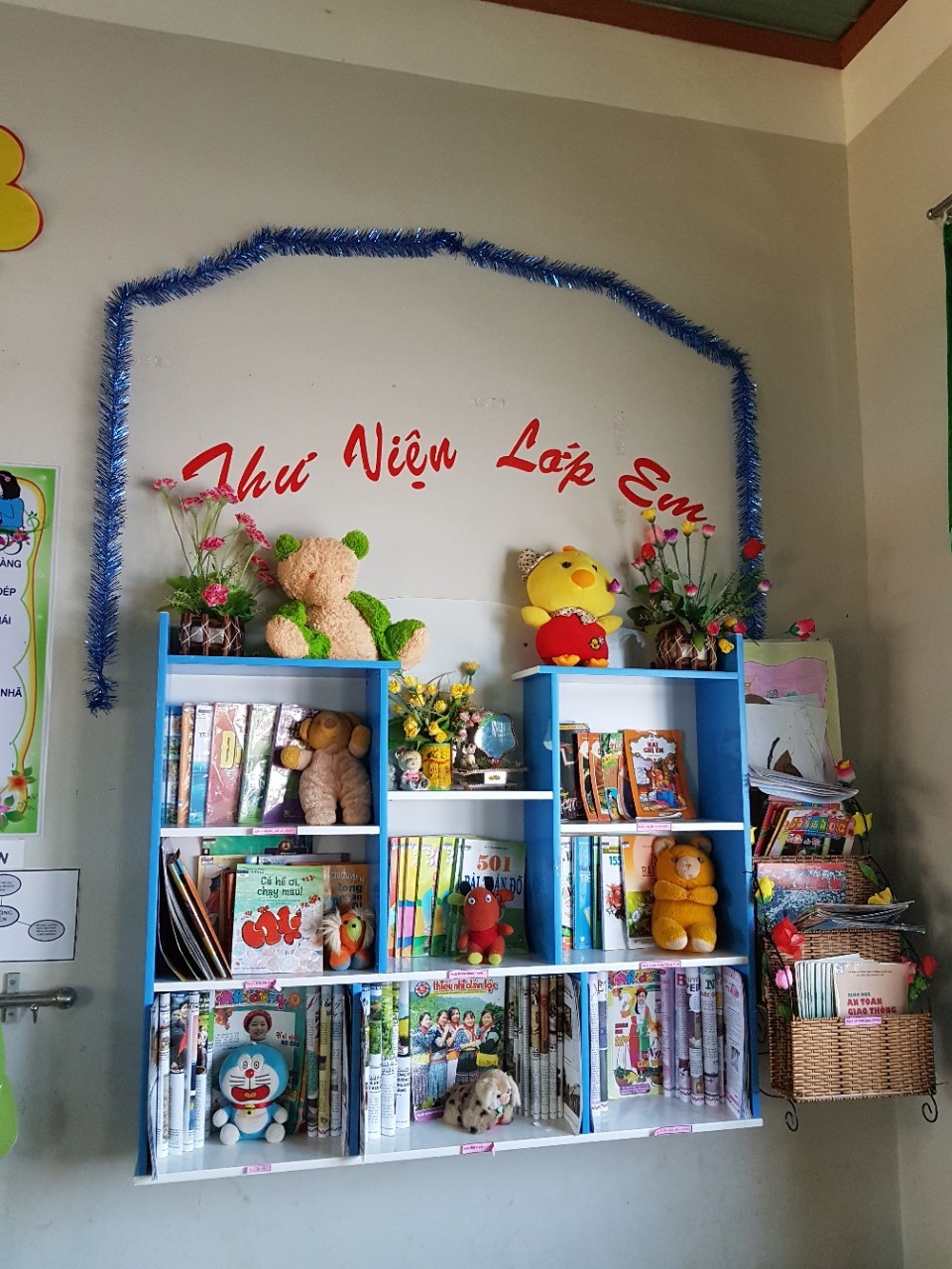 Giáo viên có thể đặt một kệ gỗ gồm nhiều nấc ngay góc lớp và lựa chọn những chậu cây nhỏ nhắn với khả năng ưa sống trong bóng râm đặt lên đó. Sắp xếp vị trí sao cho thật đẹp mắt, đồng thời giáo viên có thể trang trí thêm trên kệ những quyển sách, một vài hộp quà để tăng thêm sự sinh động.