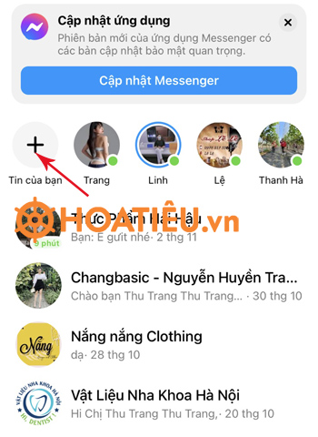 Bước 1: truy cập vào messenger -> chọn Tin của bạn