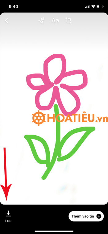 Bước 4: dùng đầu ngón tay để bắt đầu vẽ và sáng tạo theo ý thích, sau khi vẽ xong thì các bạn nhấn Lưu là xong. Ảnh vẽ hoa trên Messenger sẽ được tải về máy.