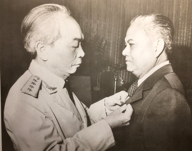Câu 4: Bức ảnh Chủ tịch Quốc hội Vương Đình Huệ và Chủ tịch Quốc hội Lào Saysomphone Phomvihane dưới đây được chụp vào thời gian nào, ở đâu?