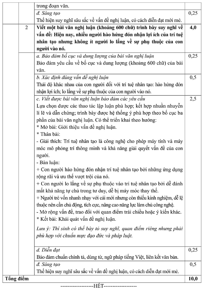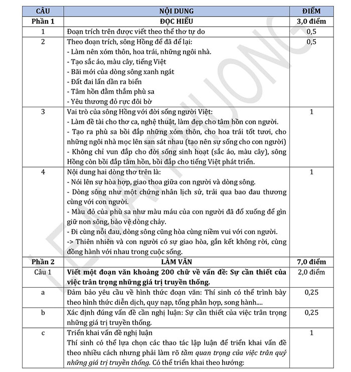 Đáp án đề tham khảo 2025 môn Ngữ Văn