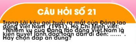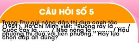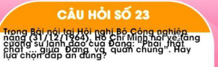 Câu 26. Trong bài Hai mươi năm đấu tranh thắng lợi của cách mạng Việt Nam (3/9/1965), Hồ Chí Minh viết: “Nhân dân hoàn toàn làm chủ …”. Hãy lựa chọn đáp án đúng?