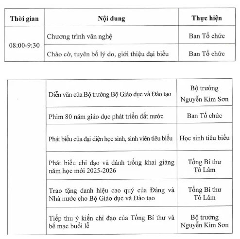 Theo đó, thời gian, hình thức tổ chức lễ kỷ niệm 80 năm thành lập Bộ Giáo dục và Đào tạo và khai giảng năm học 2025 2026 như sau: