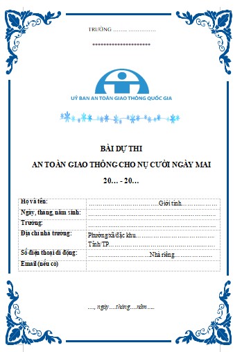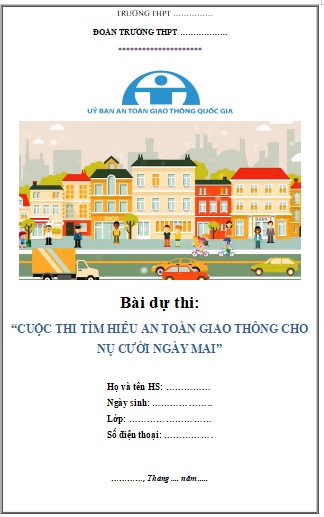 Mẫu bìa bài dự thi “An toàn giao thông cho nụ cười ngày mai” năm học 2025-2026 là một phần quan trọng trong hồ sơ dự thi của học sinh và giáo viên trung học, nhằm bảo đảm tính trang trọng, đúng quy cách và thể hiện sự nghiêm túc trong quá trình tham gia cuộc thi. Cuộc thi “An toàn giao thông cho nụ cười ngày mai” đã chính thức được phát động trên phạm vi toàn quốc, hướng tới mục tiêu nâng cao nhận thức, kỹ năng và trách nhiệm của thế hệ trẻ trong việc chấp hành luật giao thông, xây dựng văn hóa giao thông an toàn, văn minh. Việc chuẩn bị mẫu bìa đúng chuẩn không chỉ giúp bài dự thi có hình thức đẹp mắt, khoa học mà còn thể hiện sự đầu tư, tôn trọng đối với cuộc thi.