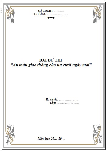 Các mẫu bìa bài dự thi An toàn giao thông cho nụ cười ngày mai 2025 được Hoatieu chia sẻ trong bài viết này được định dạng ở dạng file doc giúp bạn đọc dễ dàng chỉnh sửa lại theo ý của mình.