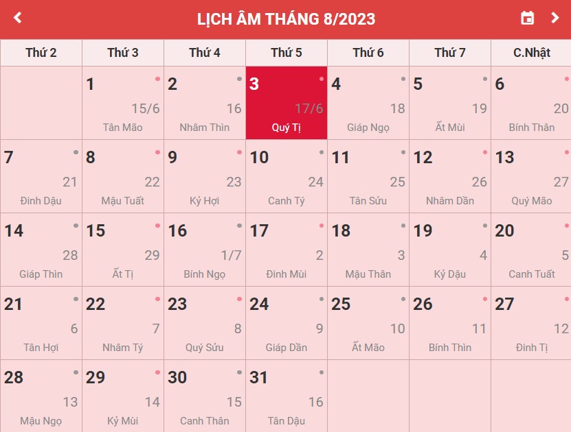 Ngày 2/7 âm lịch 2023 (17/8/2023)