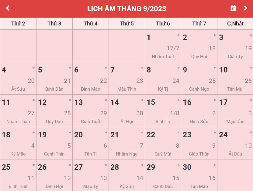 Ngày 24/7 âm lịch 2023 (8/9/2023)