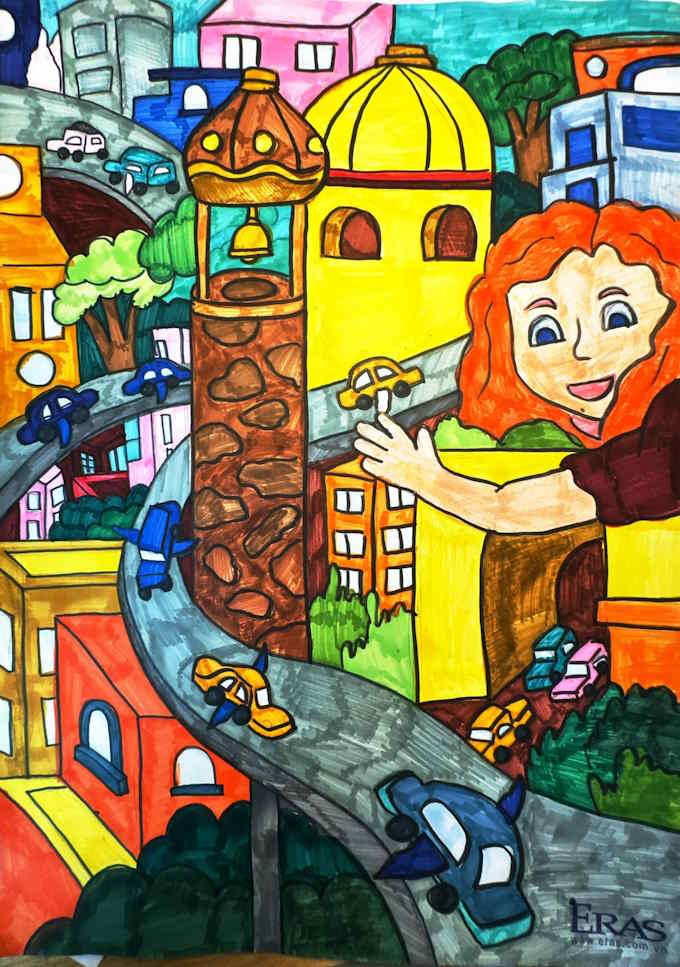 Mẫu vẽ tranh Đô thị xanh hạnh phúc đẹp nhất