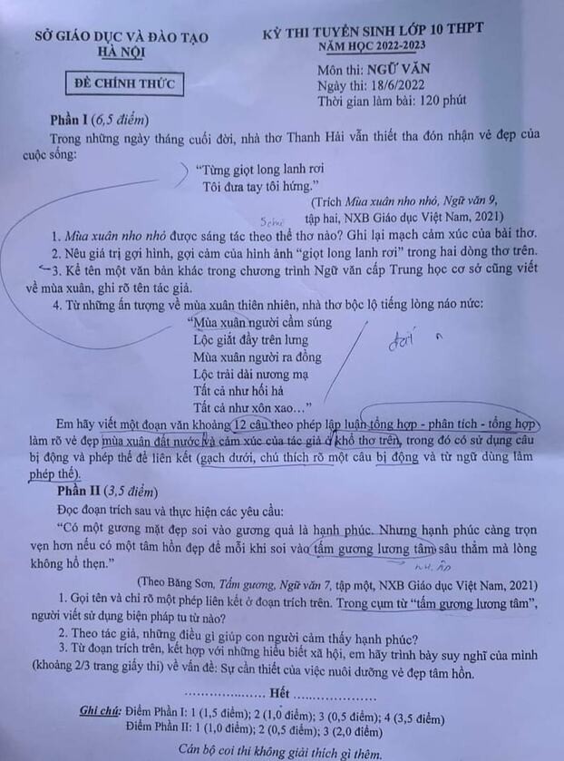 - Đề Ngữ văn vào 10 Hà Nội năm 2022