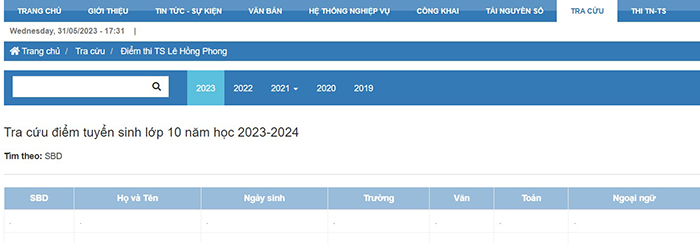 Để xem điểm thi vào lớp 10 chuyên Lê Hồng Phong Nam Định 2023, các bạn nhấn vào đường link bên dưới, sau đó nhập số báo danh và nhấn tra cứu.