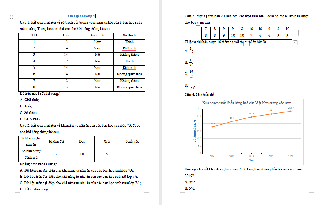 Trắc nghiệm Toán 7 Bài tập cuối chương 5