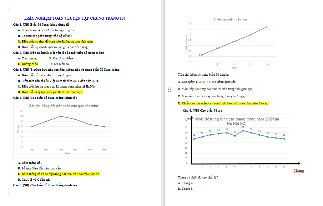 Trắc nghiệm Toán 7 Luyện tập chung trang 106