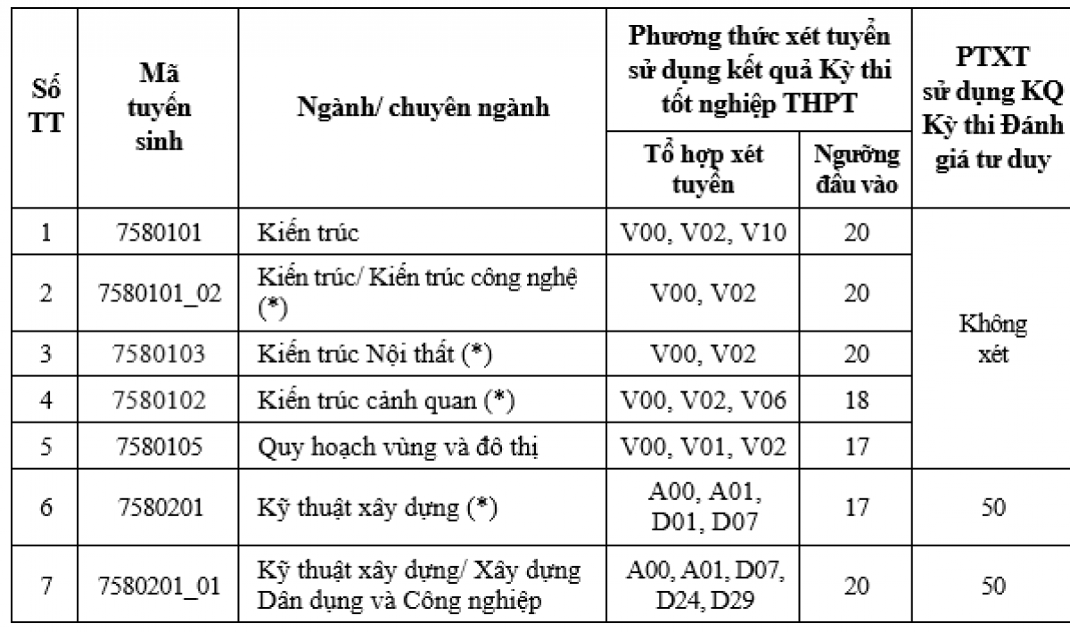 - Điểm chuẩn Đại học Kiến trúc Hà Nội 2024